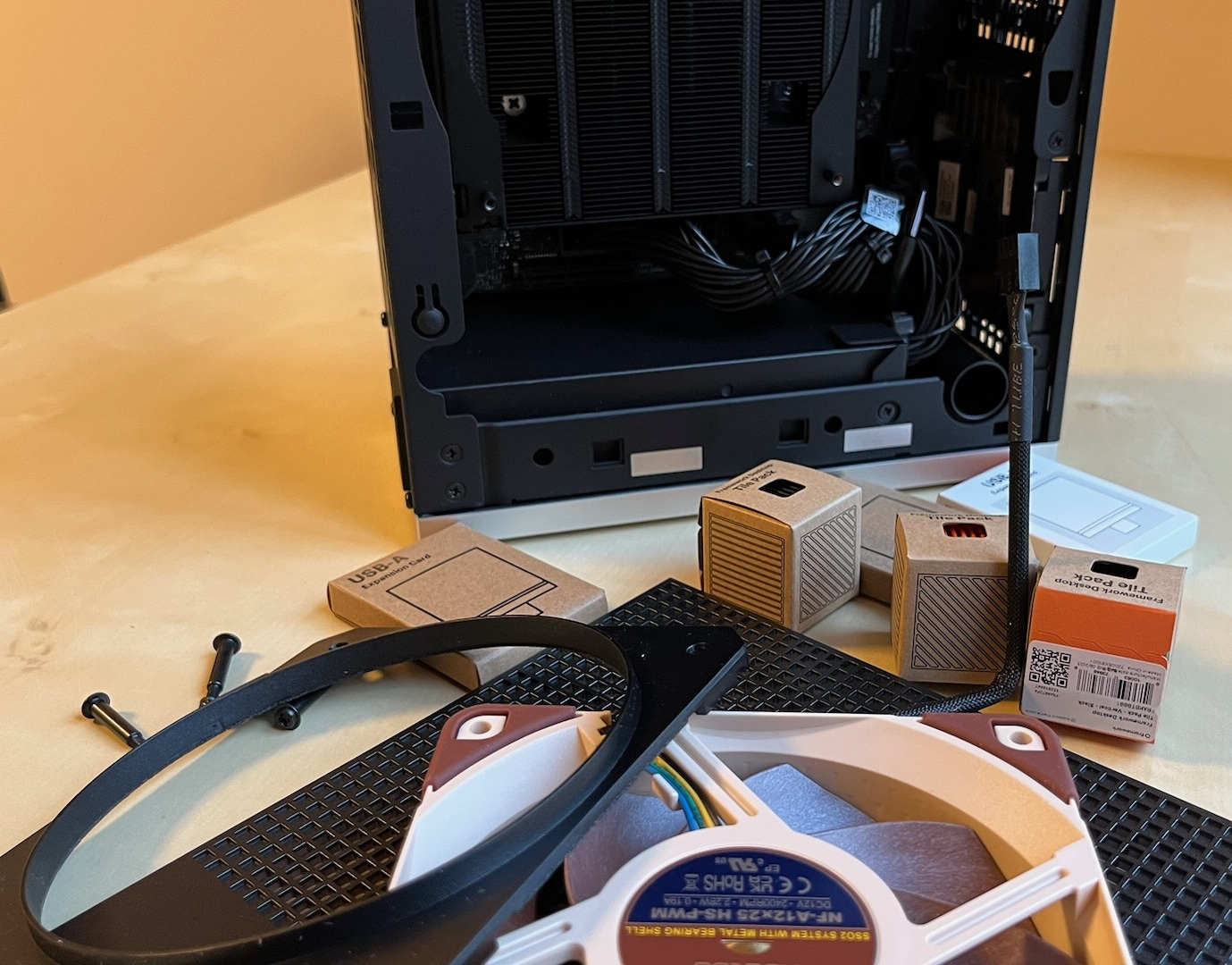 Der Zusammenbau ist unkompliziert und gelingt in einer halben Stunde. Ich habe dann Fedora 43 installiert (weitere zehn Minuten). Alles funktionierte auf Anhieb, das Gerät lief die erste halbe Stunde praktisch lautlos.