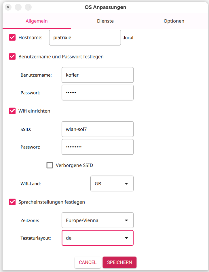 Wenn Sie möchten, können Sie im Imager eine Vorweg-Konfiguration durchführen. Das ist vor allem für den Headless-Betrieb praktisch, erspart aber auch erste Konfigurationsschritte im Assistenten, der beim ersten Start erscheint.